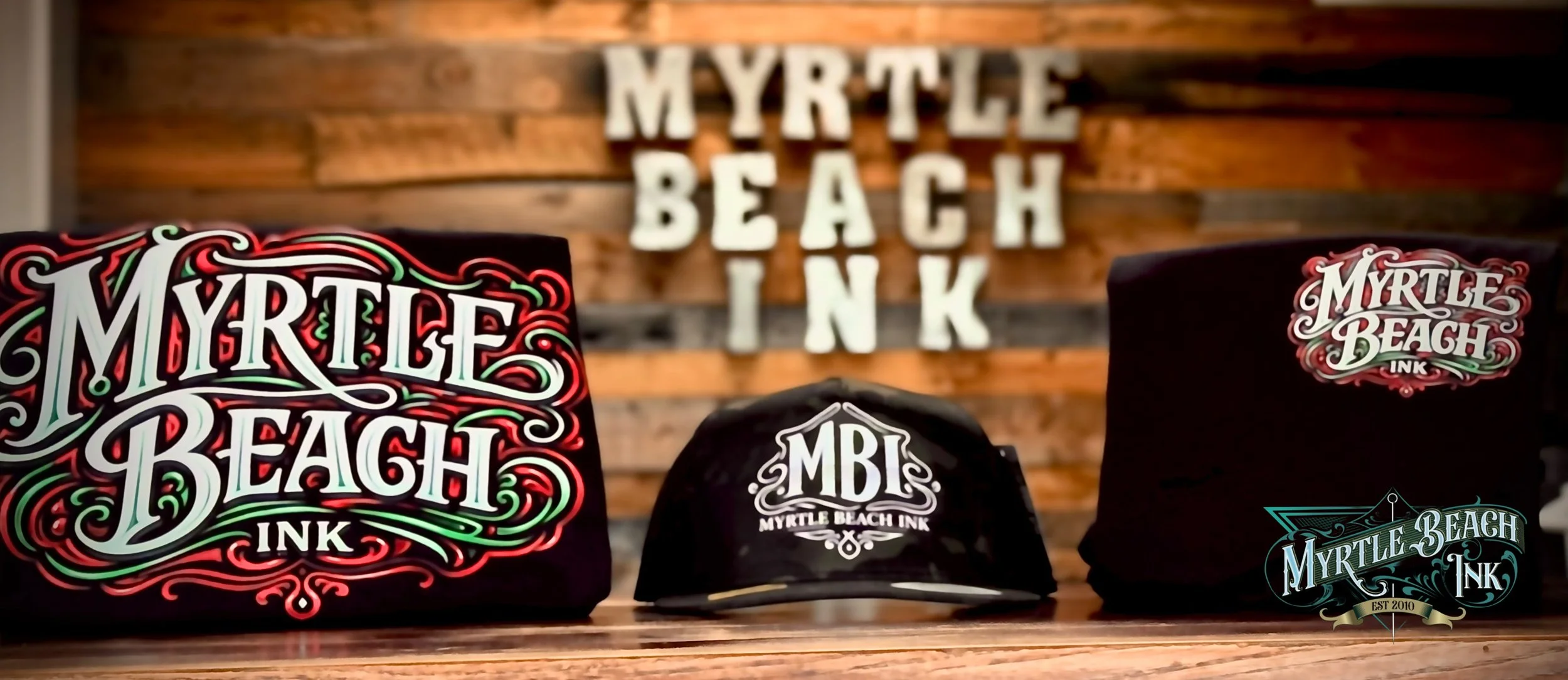 Our 2026 apparel collection is a reflection of where we are right now—our style, our energy, and the culture we’ve built inside Myrtle Beach Ink. Just like our tattoos, every design is intentional, clean, and made to stand out without trying too hard.